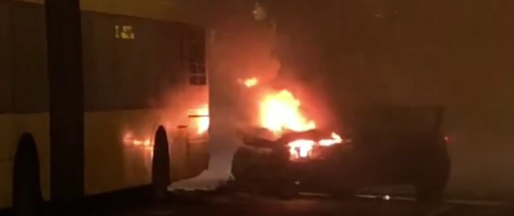 W piątkowy wieczór [21.11.2025] w centrum Katowic doszło do potężnego pożaru. Po zderzeniu z autobusem, zapalił się samochód osobowy. Pojawiła się ogromna kula ognia i zadymienie i sytuacja wyglądała bardzo niebezpiecznie.