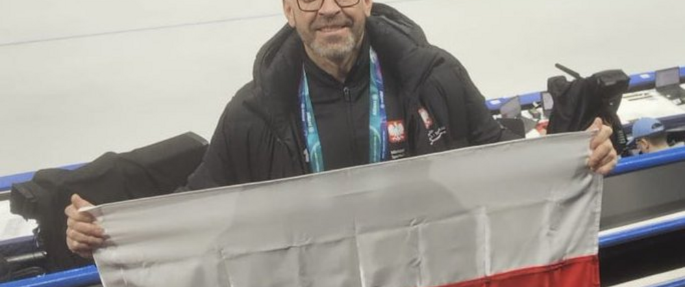 Jakub Rutnicki opublikował swoje zdjęcie, na którym widzimy go stojącego na trybunach. W tle widać taflę lodowiska z symbolem igrzysk olimpijskich.