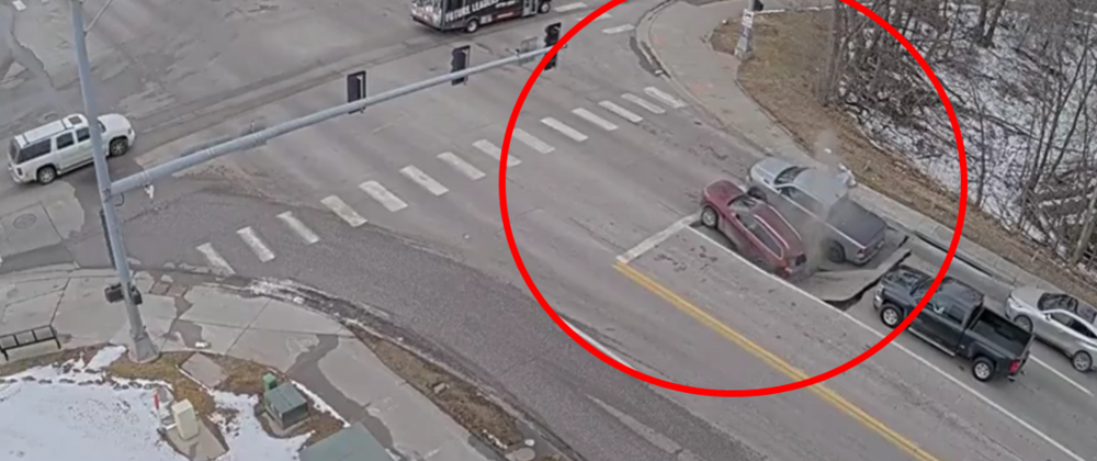 Na nagraniu widzimy samochody stojące na skrzyżowaniu i czekające na zmianę świateł. Nagle ziemia się zapada i dwa samochody wpadają w dół.