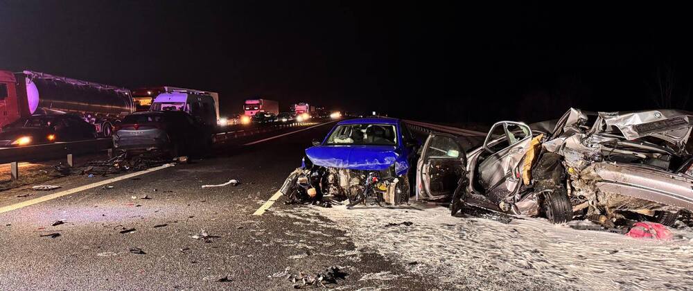 Zdarzenie miało miejsce 25.03.2026 r. około godziny 19:30 na trasie S8 – 45,7 km, gdzie doszło do zderzenia pięciu pojazdów. Jak widać na zdjęciach, niektóre z nich uległy kompletnemu zniszczeniu, a na drodze leżały części rozbitych samochodów. W wyniku wypadku zginęła jedna osoba, są też ranni.