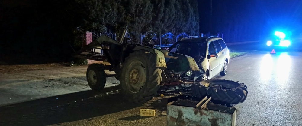 kierujący ciągnikiem 62-latek włączał się do ruchu bez wymaganych świateł. Doprowadził również do zderzenia z jadącym prawidłowo 34-letnim kierowcą samochodu osobowego. Po kolizji kierowca ursusa oddalił się z miejsca zdarzenia.